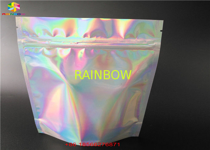 For cosmetics beautiful min k bag holographic pouches Mylar sachet flat foil laminated for gift packaging