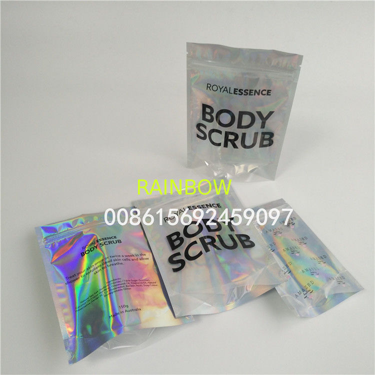 Holographic laser bag for eyelash the glossy bag for bath salts the stand up pouches with zipper for body scrubs |