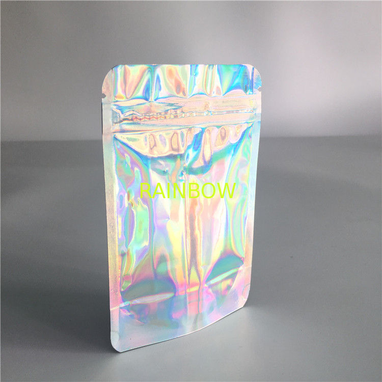 Iridescent clear front k biodegradable hologram bag for eyelash/ brush/jewelry/glitter/bath salt/cosmetic jar/candy
