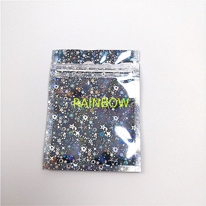 Custom Printed Twinkling Stars Laser Film Bag Zip Lock Hologram Bag For Cosmetics