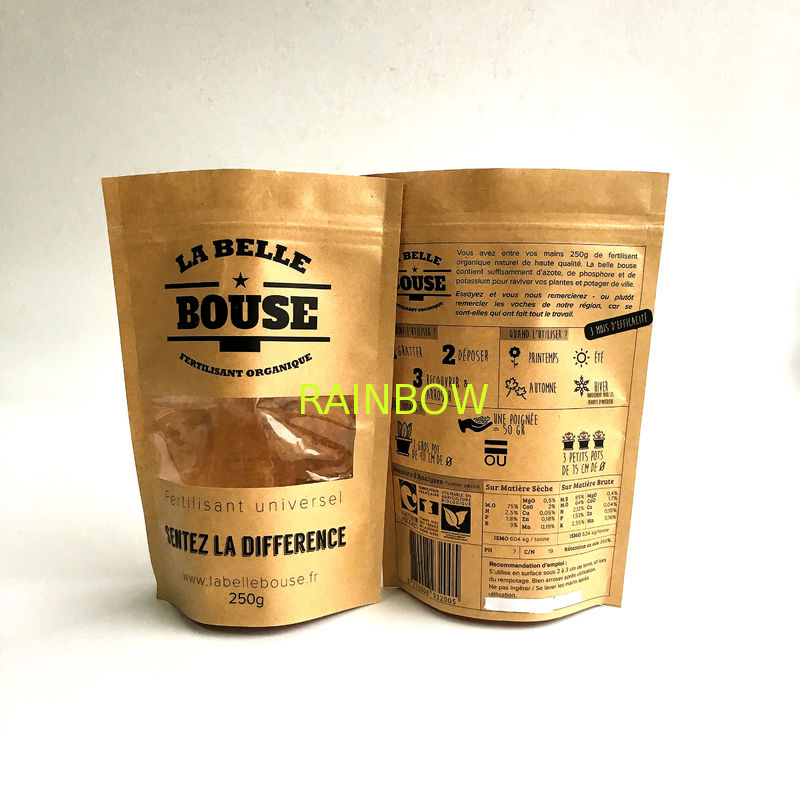 Recyclable Natural Zip Lock Kraft Paper Bag Custom Printed Stand Up Pouch With Window