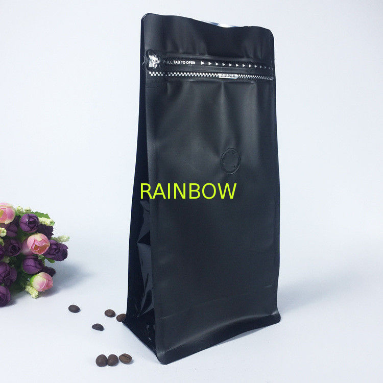Resealable matt black aluminum foil lined 500g 1kg 2kg zip lock flat bottom coffee packaging bag with valve