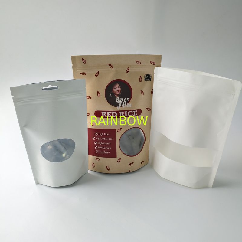 Custom Design Logo Food Grade Stand Up Pouch kraft Paper Foil Coffee Nuts Bag With Clear Rectangular/Oval Window |