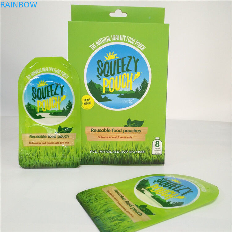 BPA free reusable squeeze packaging double zipper liquid bag baby food spout pouch with paper box