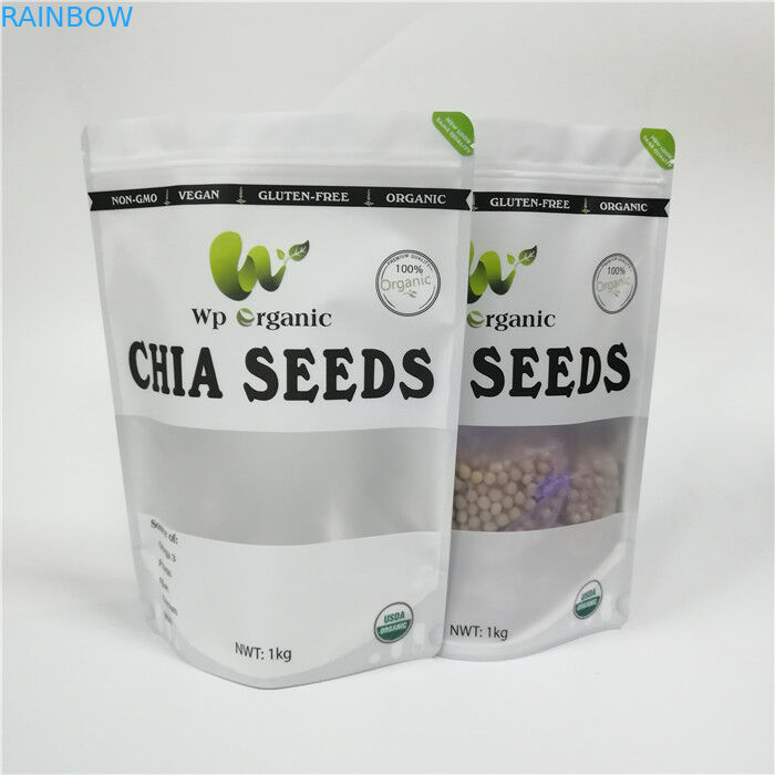 Stand up k plastic mylar pouches chia seeds packaging bags with clear front window
