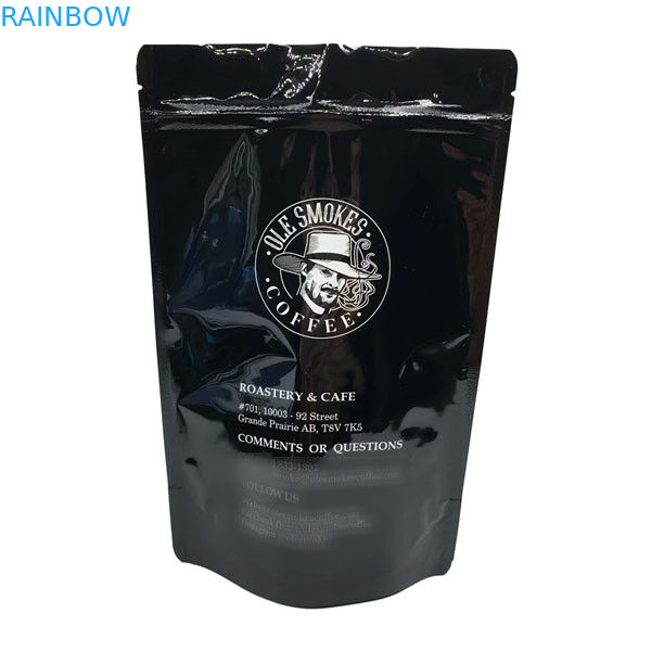 Custom colorful 100g 200g 250g 500g zip lock coffee beans pouch glossy black bags with tear notch coffee packaging