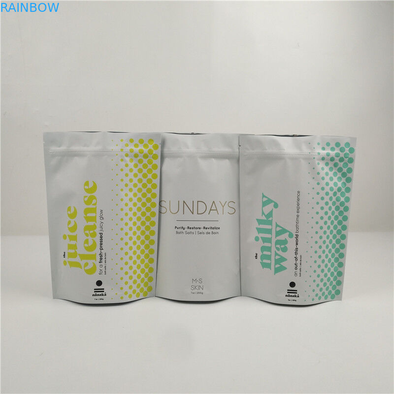 Custom Printed Aluminum Foil Plastic Bath Salt Packaging Bags Zip Lock Stand Up Body Scrub Bags