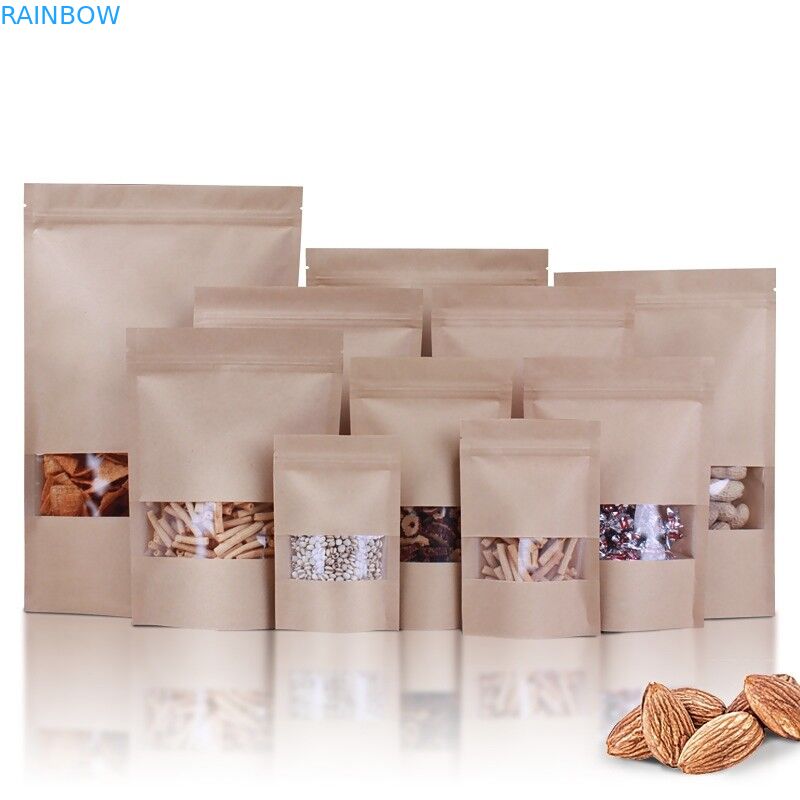 Custom White Standup Kraft Paper Bag Zipper Coffee Food Storage Packing Paper Ziplock Bag With Clear Window