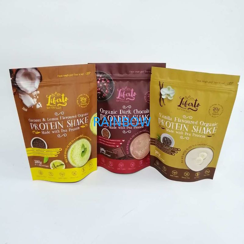 Low MOQ Customized Food Grade Printed Aluminum Foil Stand up Bag Plastic Mylar Zipper Bag For Protein Shake