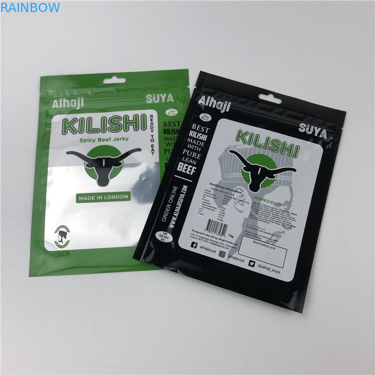 | Name | custom zipper stand up pouch with window beef jerky packaging bag |