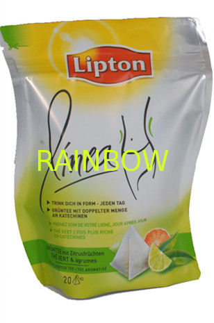 Graceful Curved Lipton PET / VMPET / PE Tea Packaging Bags Stand Up
