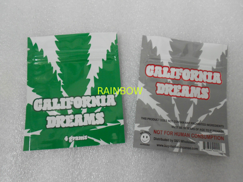 Title: California dream herbal incens bag / mylar zipper research chemcial pill sachet