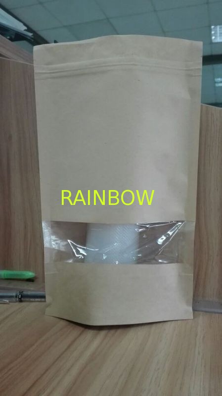 Stand Up Kraft Paper Food Gift Bags Pouch With Clear Window k Resealable