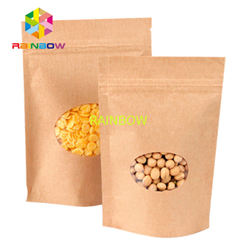 Brown kraft paper mylar k bag with window for tea / coffee bean packaging