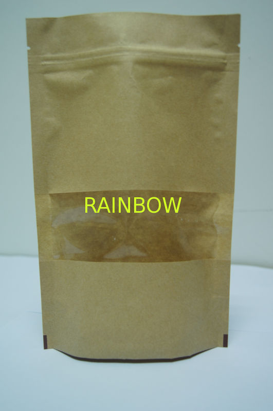 Customized Recyclable Stand Up Brown Kraft Paper Bag with Clear Window