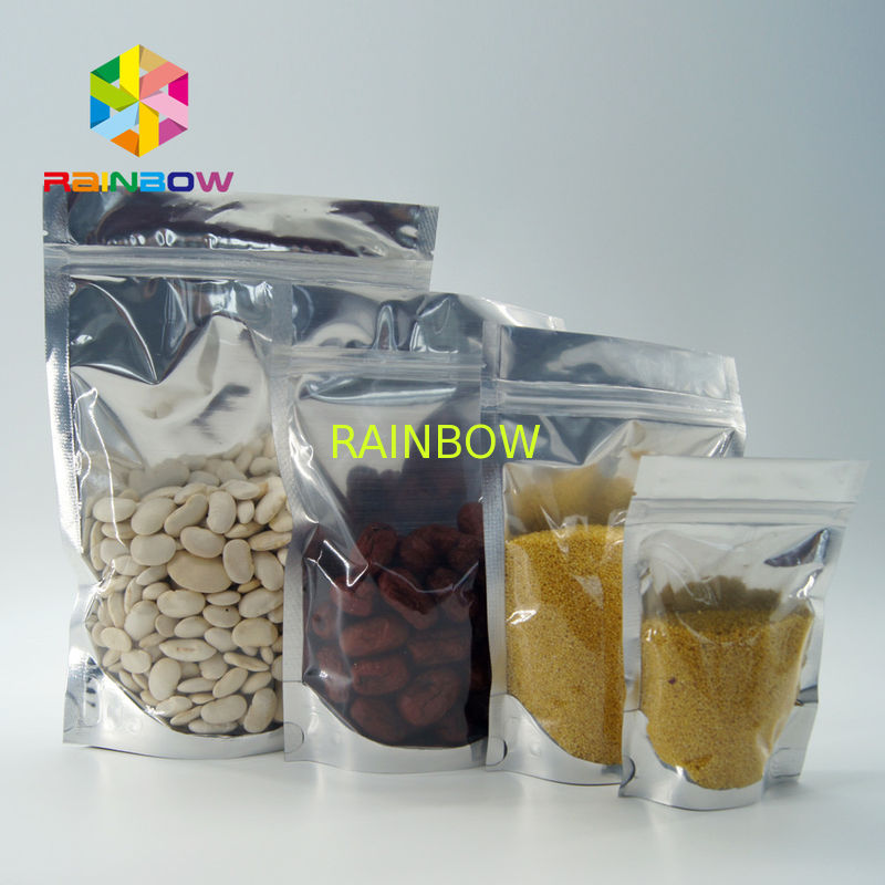 One Side Clear and One Side Aluminum Foil Zip Bags / Silver Aluminum Foil Bags /Clear Metallic Foil Stand Up k Bag